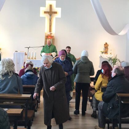 Po Šv. Mišių klebonas Vaidas Buivydas bendruomenės narius ir tikinčiuosius pakvietė į šventę pagyvenusiems žmonėms Ryškėnų kultūros centre.